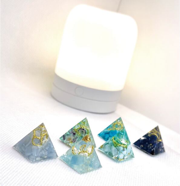 オルゴナイトは、樹脂や金属などの材料を組み合わせて作られており、その組み合わせによってさまざまな効果が期待できます。マルチフローライトは、バランスのとれた波動を持ち、周囲のネガティブなエネルギーを浄化してくれるとされています。日常のストレスや疲れを癒し、ポジティブな気持ちをサポートしてくれるでしょう。
