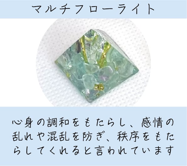 身につけるだけでなく、お部屋に飾ったり持ち歩いたりして、いつでもパワフルな浄化を受けることができます。ぜひ、マルチフローライト【ミニミニオルゴナイト】で、ネガティブなエネルギーから心身を癒してみてください。